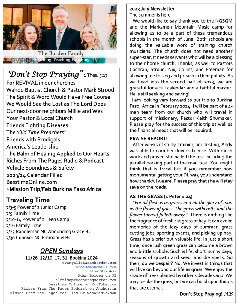 July 4, 2023July 4, 2023 thesingerschapel July 2023 Ministry Newsletter Share this: Click to share on Facebook (Opens in new window) Facebook Like Loading...