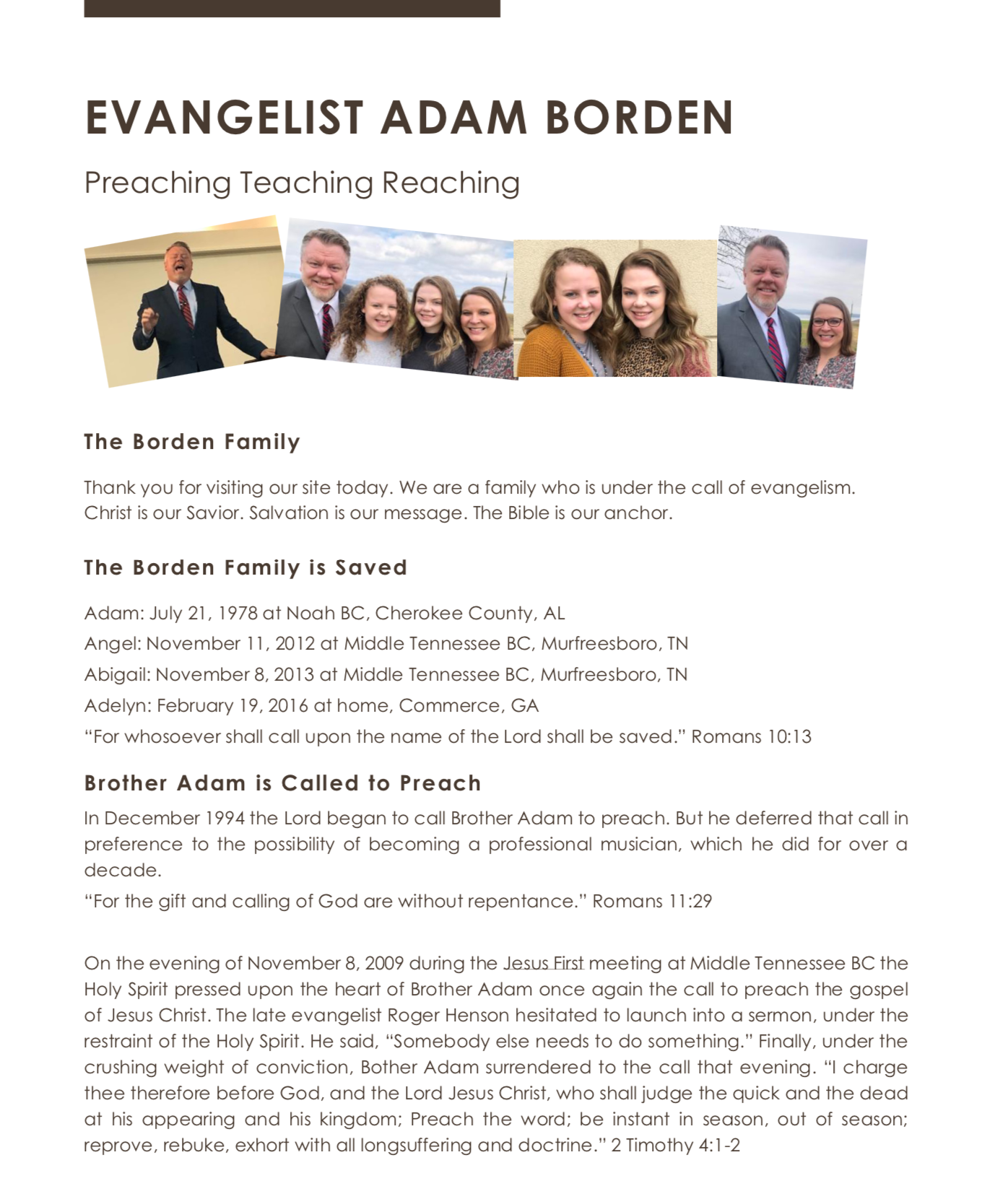 evangelist adam borden
